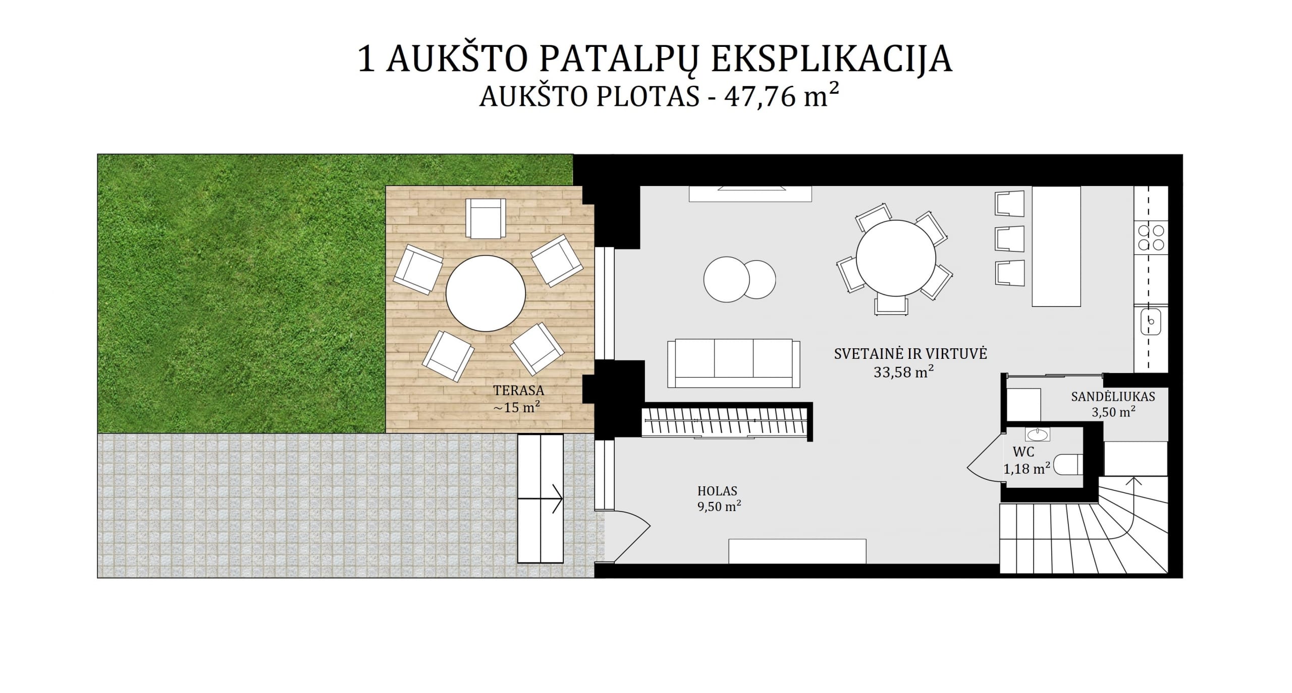 *įrengta lauko terasa su baldais;