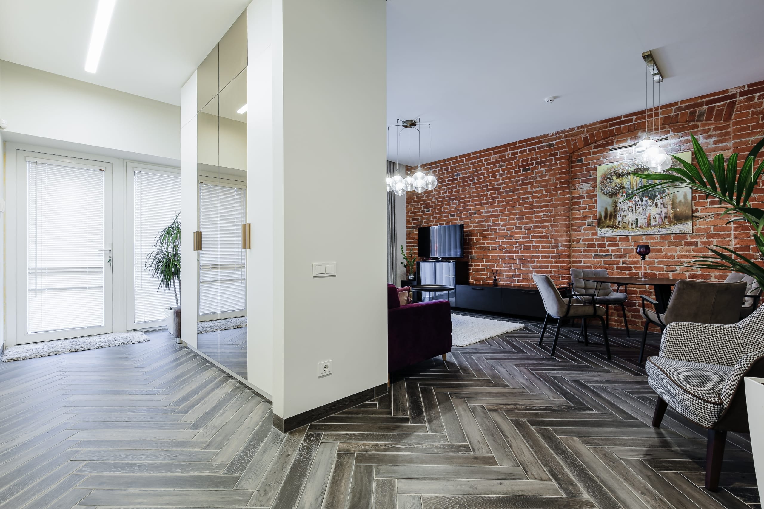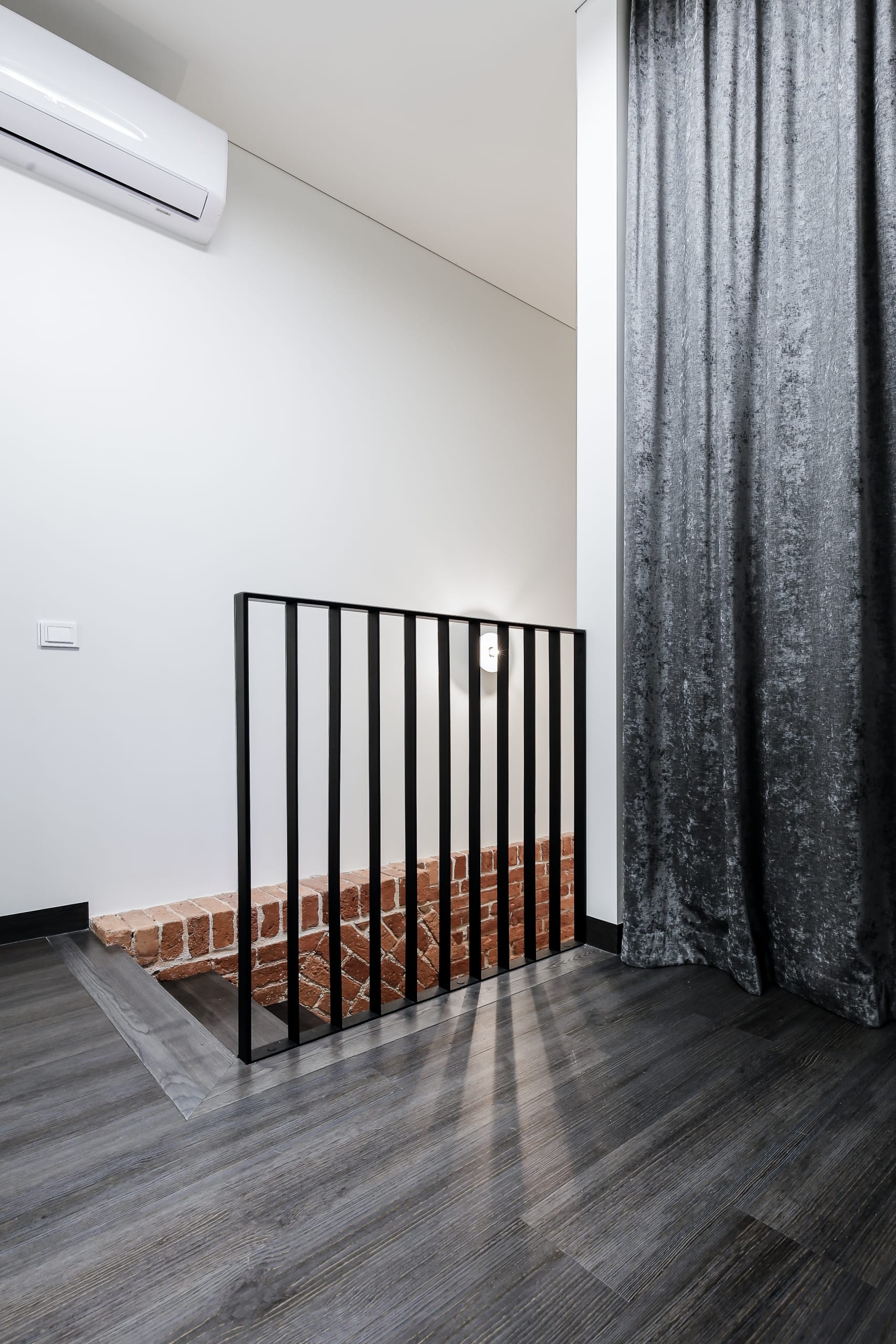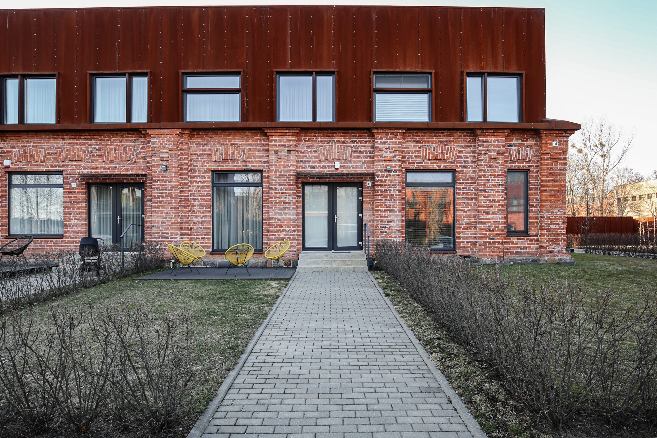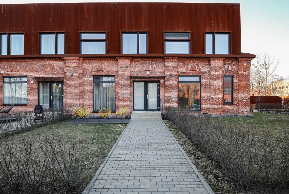 *raudonų, sendintų plytų siena pirmame aukšte,
