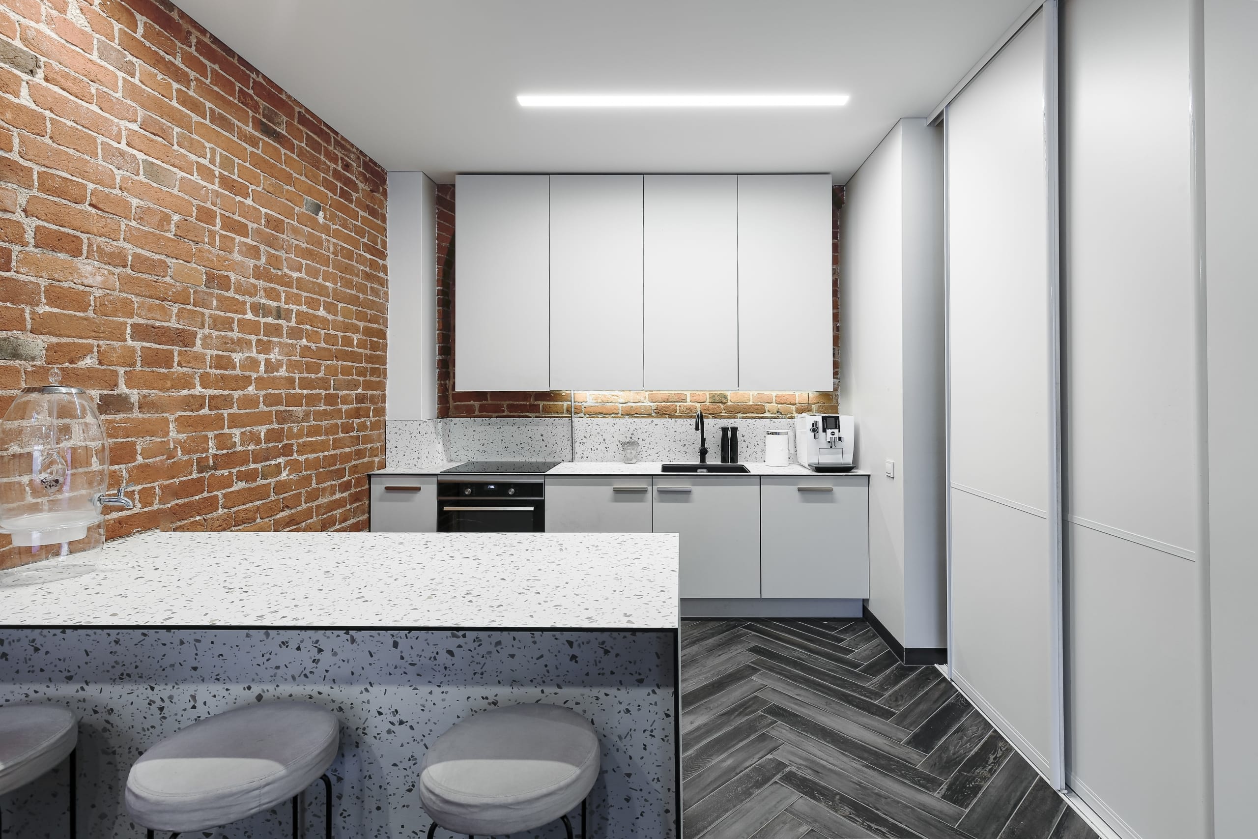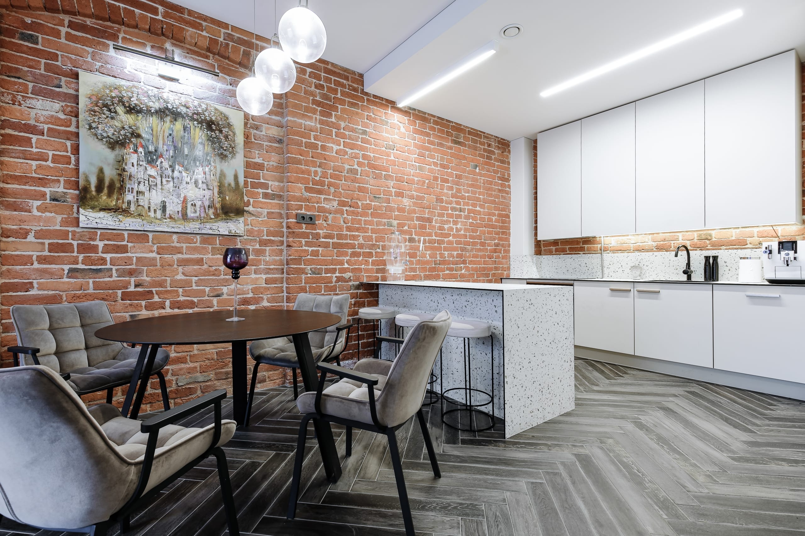 *moderni virtuvė jungiasi su erdvia svetaine;